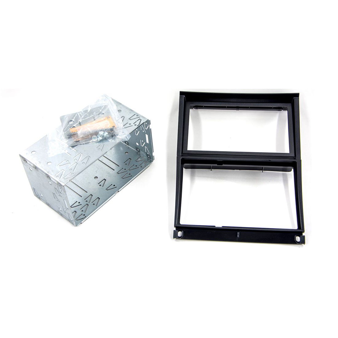 Mitoitus on tehty 2-DIN-soittimia varten, jolloin asennus on suoraviivainen yleisten 2-DIN-soittimien kanssa. Hyödynnä soittimen omaa kiinnityskehikkoa tai valmistajan suosittelemaa menetelmää soittimen lukitukseen.