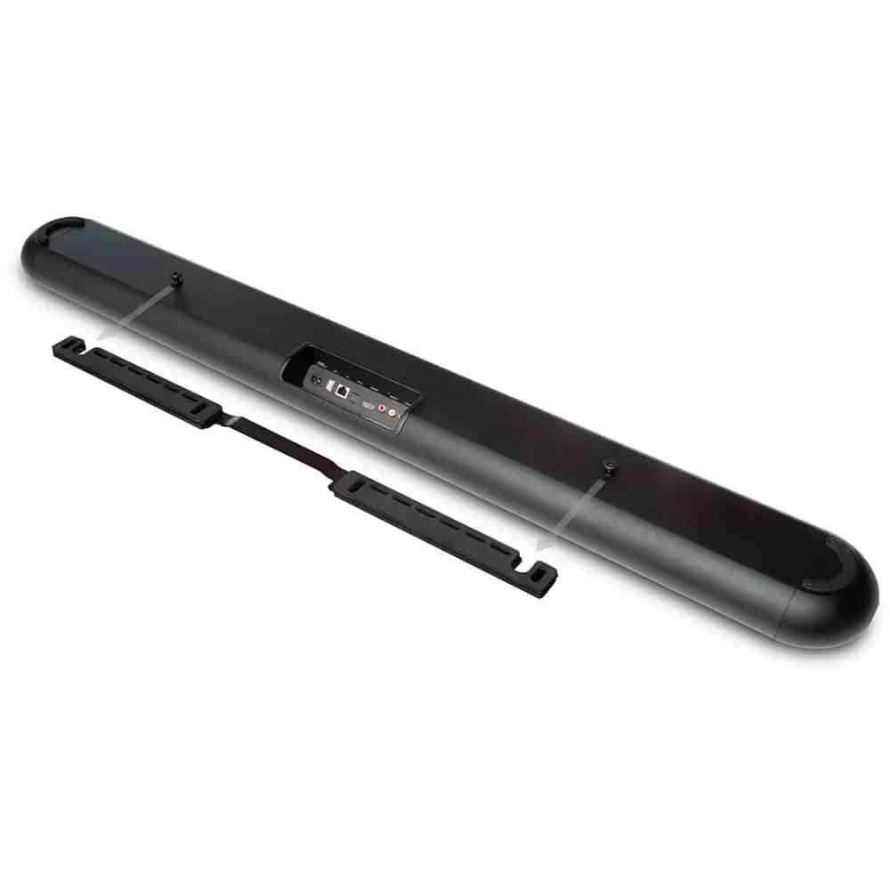 Kiinnitä seinälle tai aseta tasolle – matala 74 mm korkeus ei peitä ruutua, ja mukana tuleva teline tekee asennuksesta helppoa. BluOS-sovellus ja HDMI eARC hoitavat muun, joten sinun tarvitsee vain painaa “play”.