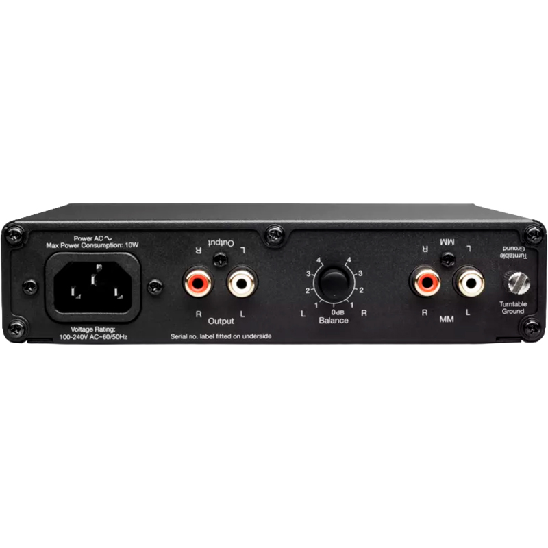 • MM-RIAA-esivahvistin 39 dB vahvistuksella – nostaa levysoittimen äänilähdön tason sopivaksi vahvistimesi linjatuloon