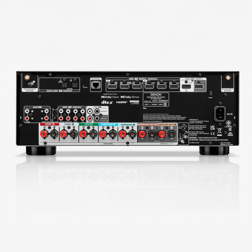 Denon AVC-X2850H sopii kotiteatteriin, pelihuoneeseen ja moni­huonejärjestelmään – kaikki viimeisimmät liitännät ja tuki valmiina.