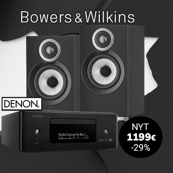 Tyylikäs ja helppokäyttöinen stereopaketti: B&W 607 S3 -kaiuttimet ja Denon RCD-N12 tarjoavat luonnollisen äänen, HDMI-televisioliitännän ja suoratoiston.