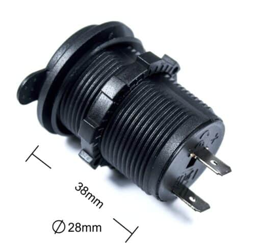 Vesitiivis tupakansytytin pistorasia. Toimii 12 ja 24 voltin järjestelmissä.