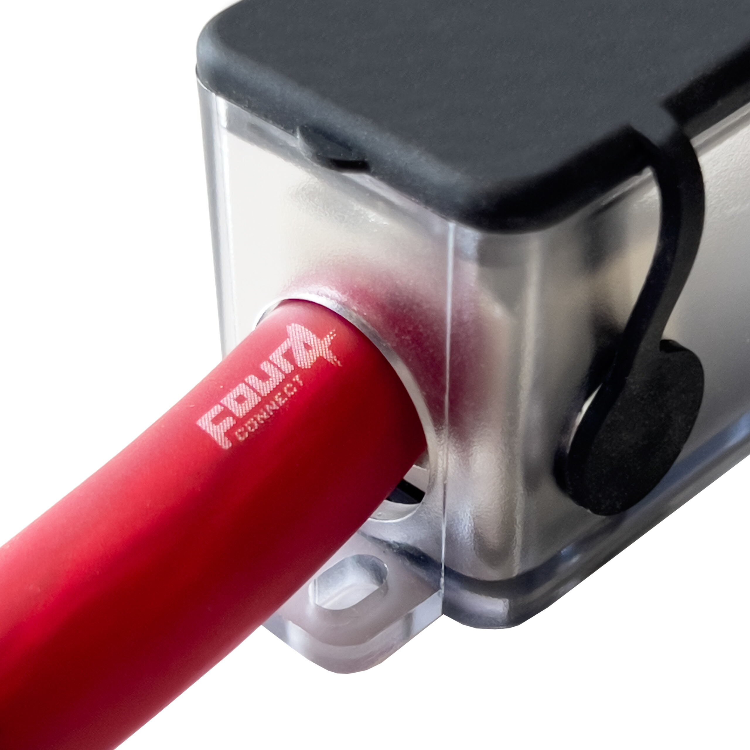 Pienikokoinen roiskevesitiivis ANL-sulakepesä Four Connectilta.
