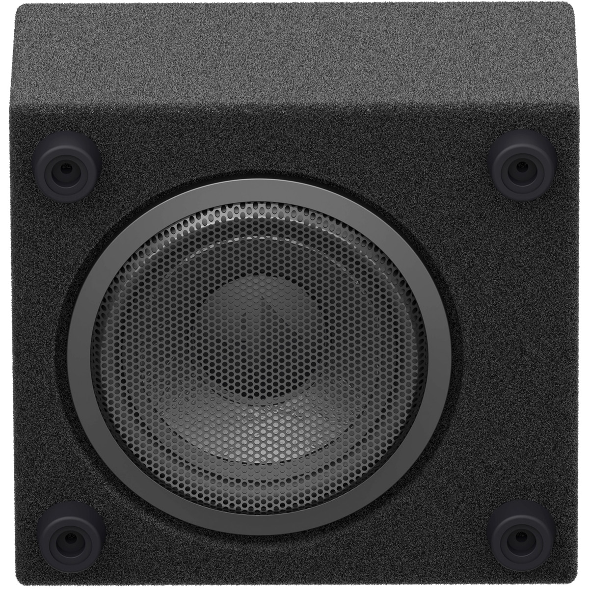 Kotelo alassuunnatulla kaiuttimella suojaa elementtiä ja levittää basson tasaisesti ohjaamoon. Mitat 184 × 310 × 285 mm tekevät tästä aidosti “mahtuu mukaan” -subin.