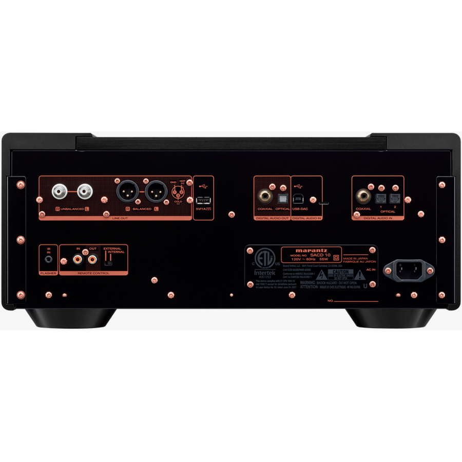 Rakenteellisesti SACD 10 on statement-tasoa: paksut alumiinipaneelit, kuparipinnoitettu pohjalevy, massiivinen runko ja Marantzin viimeisin teollinen muotoilu tekevät laitteesta yhtä aikaa näyttävän ja akustisesti stabiilin – ja siksi myös huomattavan painavan (33 kg).