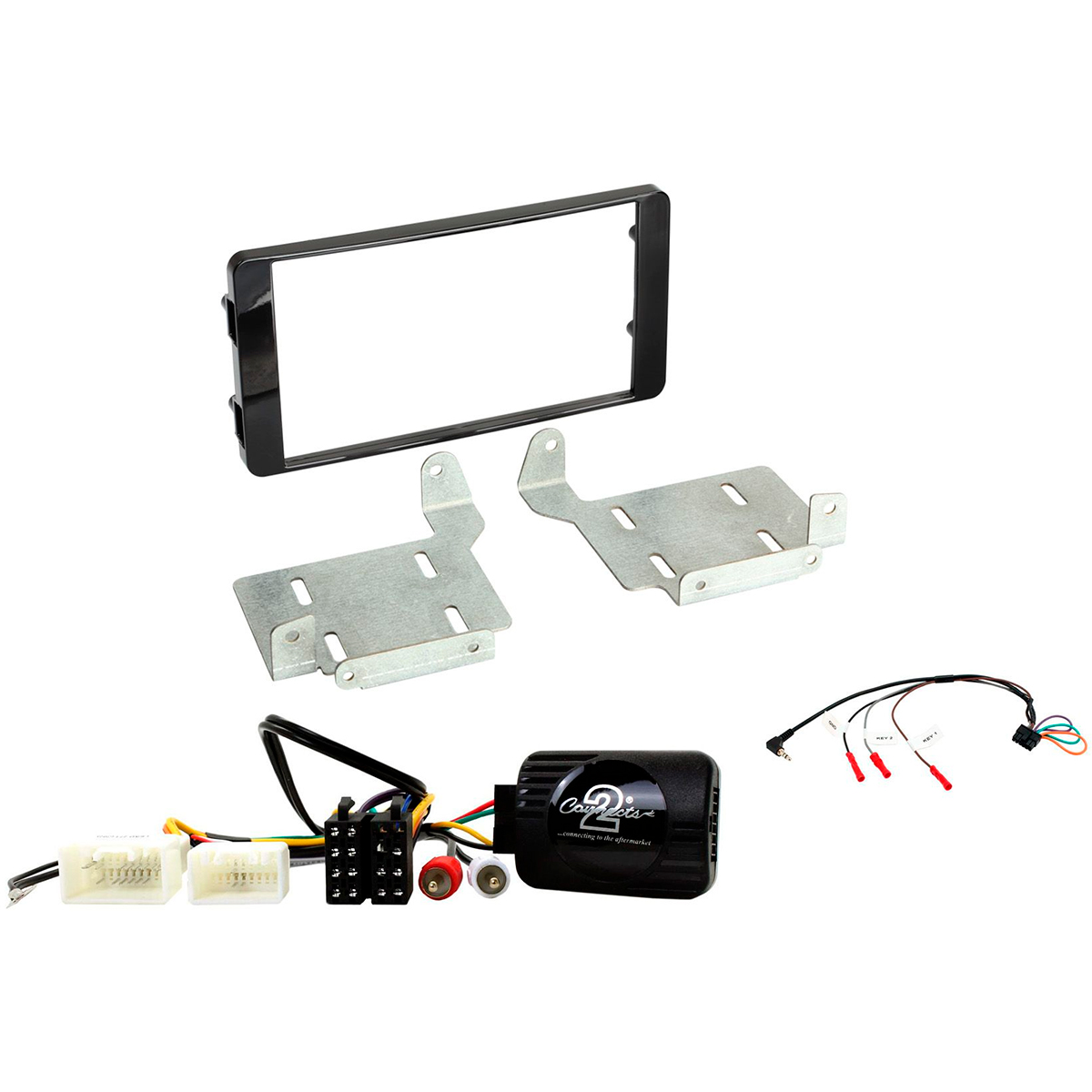 Paketti sisältää sekä mekaaniset osat (piano-musta viimeistelty 2-DIN-kehys ja metalliset kiinnikkeet) että sähköisen rajapinnan jolla auton alkuperäiset rattikaukosäätimet toimivat suoraan uuden soittimen kanssa. Lopputuloksena saat siistin tehdaslaatuisen asennuksen, jossa ohjaimet ja toiminnot pysyvät intuitiivisina ja turvallisina käyttää ajon aikana.