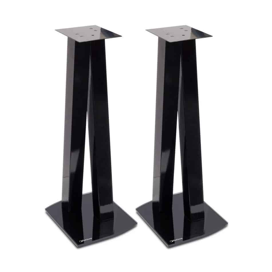 Dynaaminen ja stabiili kaiutinjalusta jonka uniikki design korostaa sen päälle asetettuja kaiuttimia.