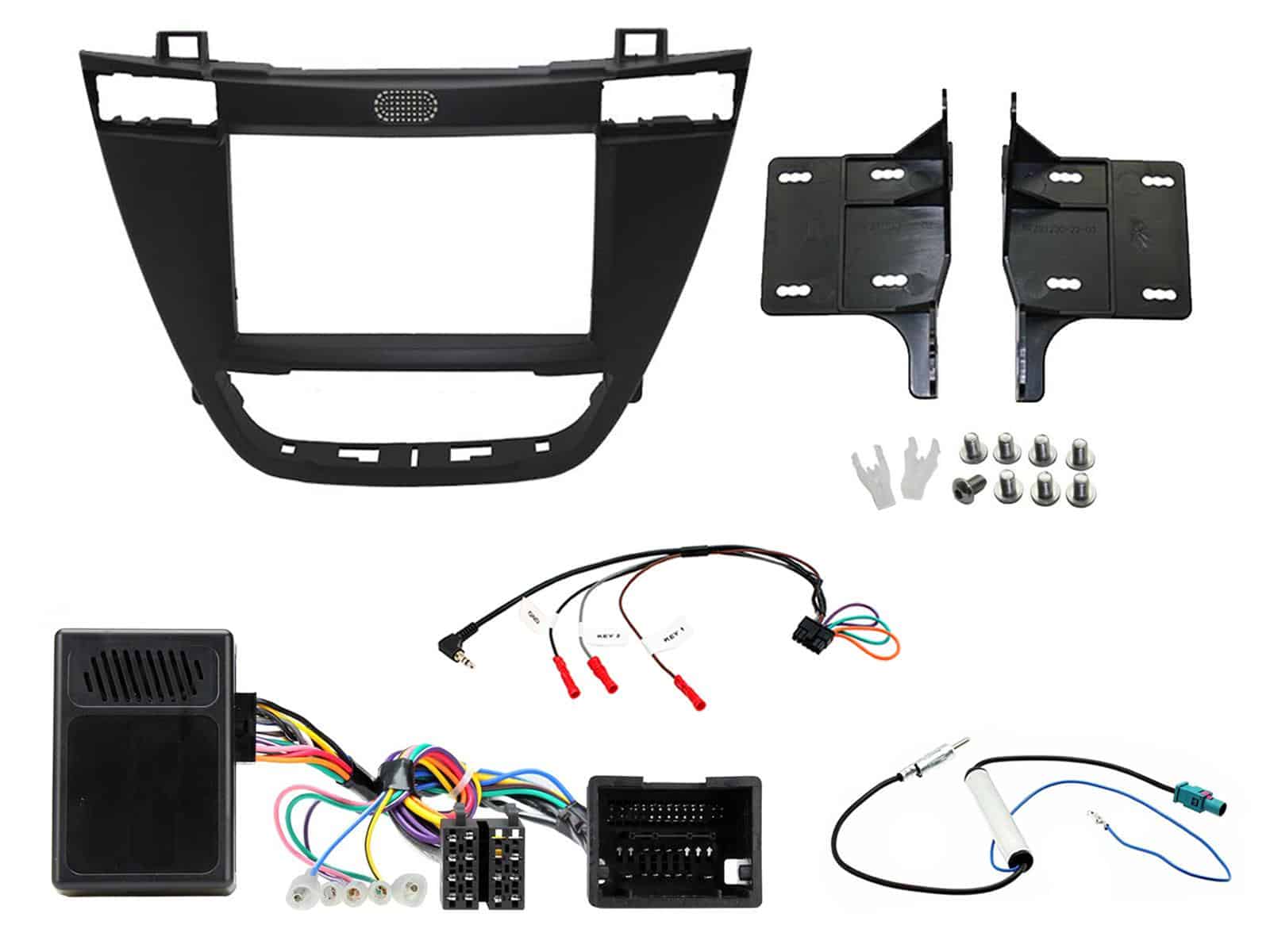 Kokonainen asennuskitti Opel Insigniaan, sisältää asennuskehyksen 2DIN soittimelle, CAN-väyläohjaimen joka on yhteensopiva alkuperäisten rattisäätimien kanssa ja antenniadapterit sekä soitinkohtaisen ohjausjohdon.