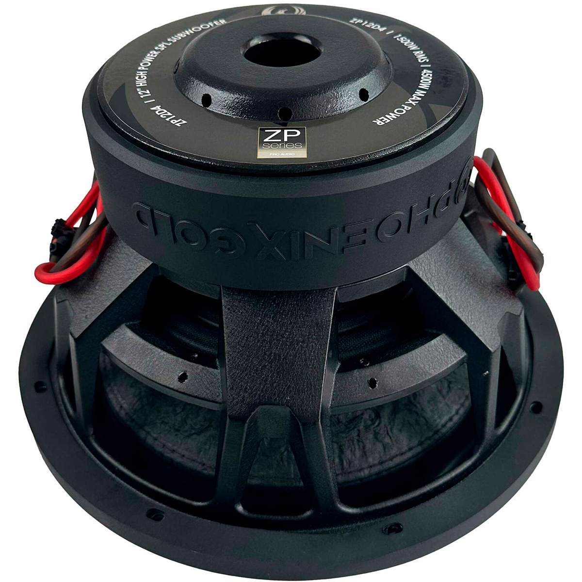 brand: Phoenix Gold model: ZP12 title: Phoenix Gold ZP12 Streetbass Subwoofer category: Autosubwoofer size_inch: 12 coil: 3" dual voice coil impedance: D2 (2×2 Ω), D4 (2×4 Ω) power_rms_w: 1500 power_max_w: 4500 sensitivity_db: 83.1 (D2), 84.9 (D4) fs_hz: 32.7 (D2), 36.3 (D4) xmax_mm: 17.5 cone: reinforced paper, dustcap with logo surround: ConeGrip spider: heavy-duty basket: cast aluminum, airflow optimized magnet: ferrite motor structure displacement_l: 3 dimensions_mm: 322 × 186 depth × 281 cutout weight_kg: 11.6 sealed_box_l: 20–35 (D2 only) ported_small_l: 45, tuning 40 Hz, port 200 cm² ported_rec_l: 60, tuning 35 Hz, port 235 cm² in_the_box: Subwoofer, manual, warranty card warranty: 1 year (EU distributor)