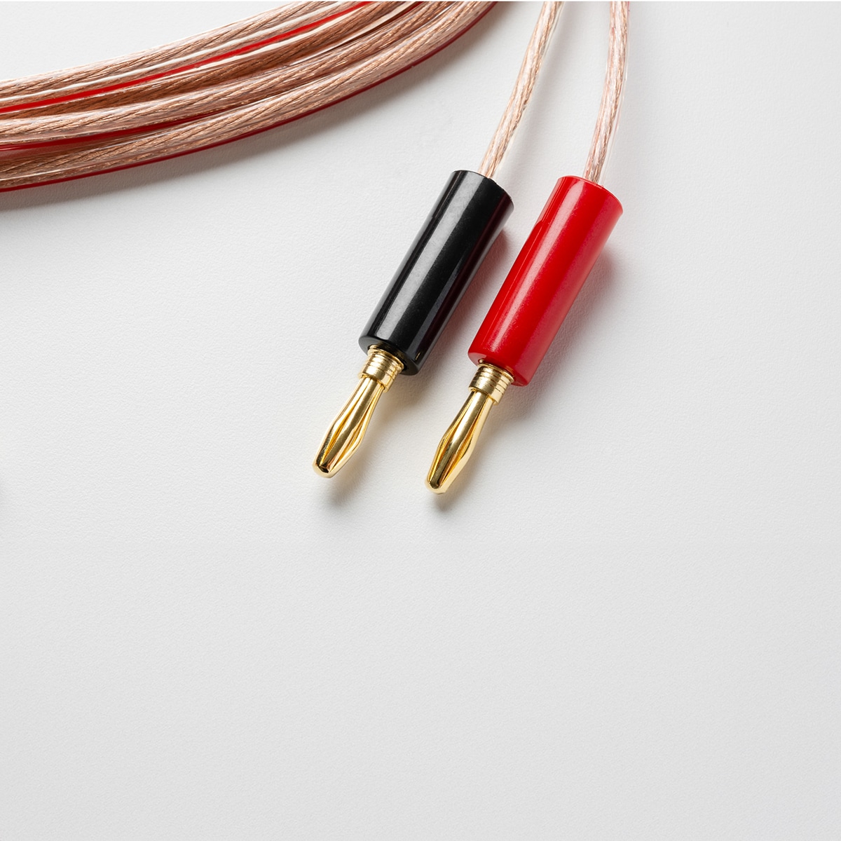 Kullatut banaaniliittimet tarjoavat luotettavan kontaktin ja vähäisen kontaktivastuksen, mikä auttaa säilyttämään hyvän signaalinsiirron kaiuttimille ja vahvistimelle. Läpinäkyvä PVC-kuori tekee kaapelista visuaalisesti huomaamattoman, ja selkeä napaisuusmerkintä ehkäisee asennusvirheitä — mikä on hyvä erityisesti silloin, kun kytkennät tehdään itse.