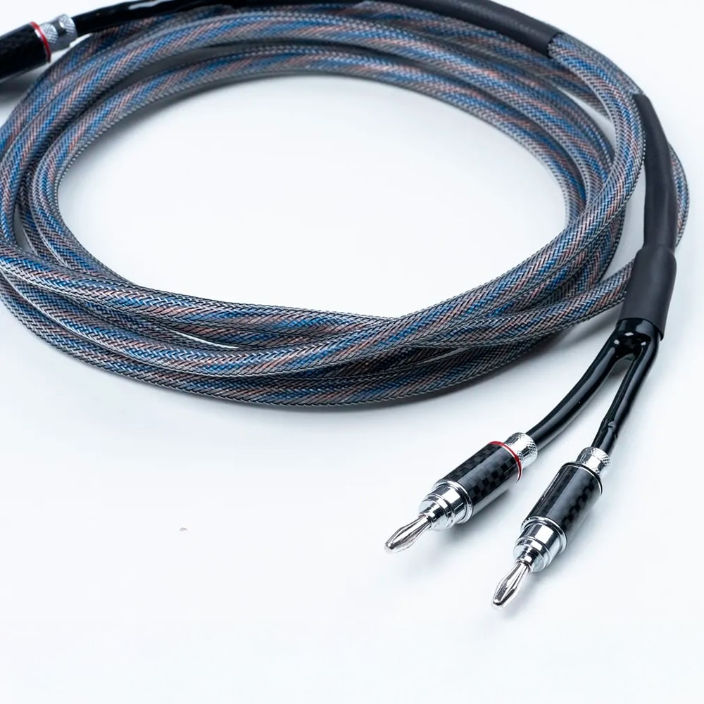 Huippuluokan, Euroopassa valmistettu kaiutinkaapeli, jossa yhdistyvät ultrapuhdas OCC-kupari ja rhodium pinnoitetut liittimet.