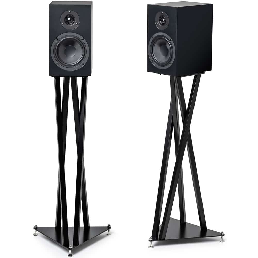 Tukeva ja akustisesti hallittu jalusta referenssitason jalustakaiuttimille – oikea korkeus, vakaa perusta ja hallittu värähtely.