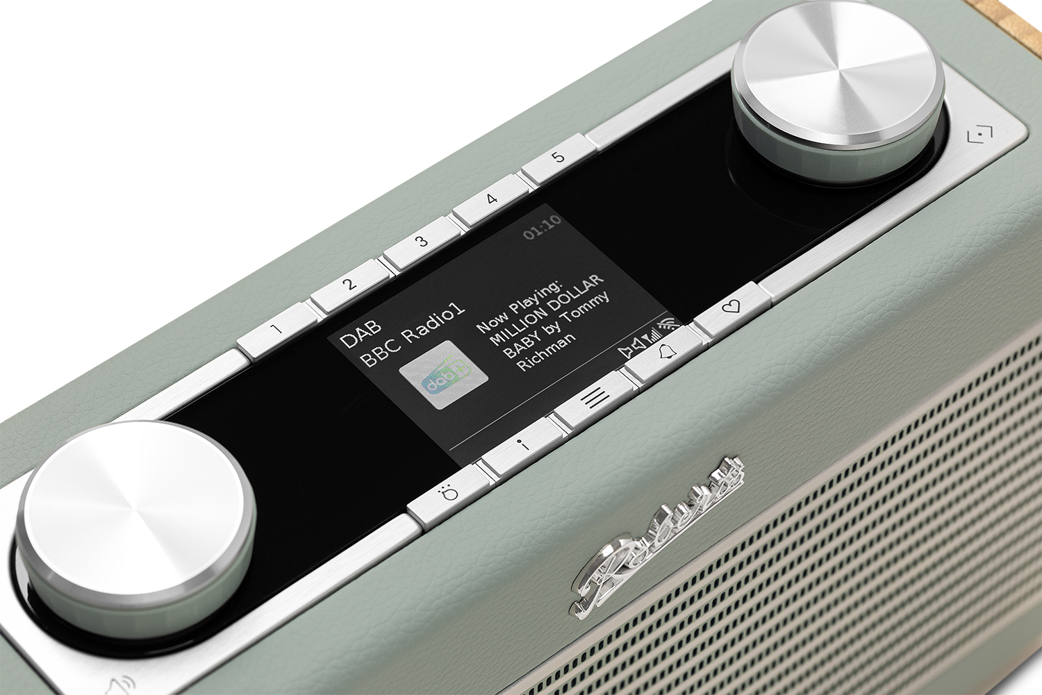 Et tarvitse sovellusta, jos et halua — kaikki onnistuu myös radion etupaneelista: 5 pikapainiketta ja selkeä valikkorulla tekevät käytöstä nopeaa ja vaivatonta.