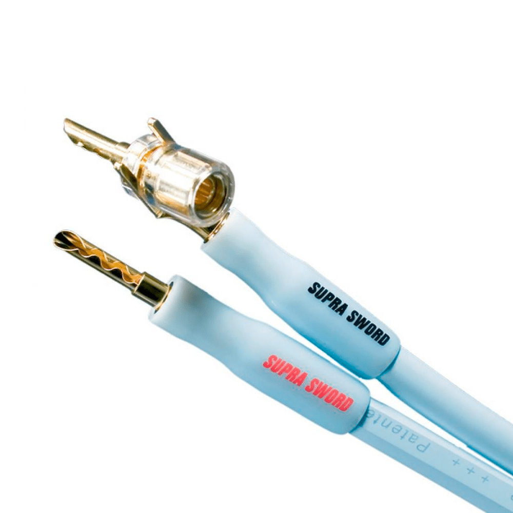 Supra Sword toimitetaan valmiiksi päätettynä Combicon-liittimillä, joissa banaani- ja haarukkaliittimet ovat vaihdettavissa M6-kierteellä. Liittimet ja kaapeli on puristettu yhteen korkeapaine-crimpillä, joka muodostaa ilmatiiviin ja mekaanisesti vakaan liitoksen – ilman juotteen mahdollisia heikkouksia.