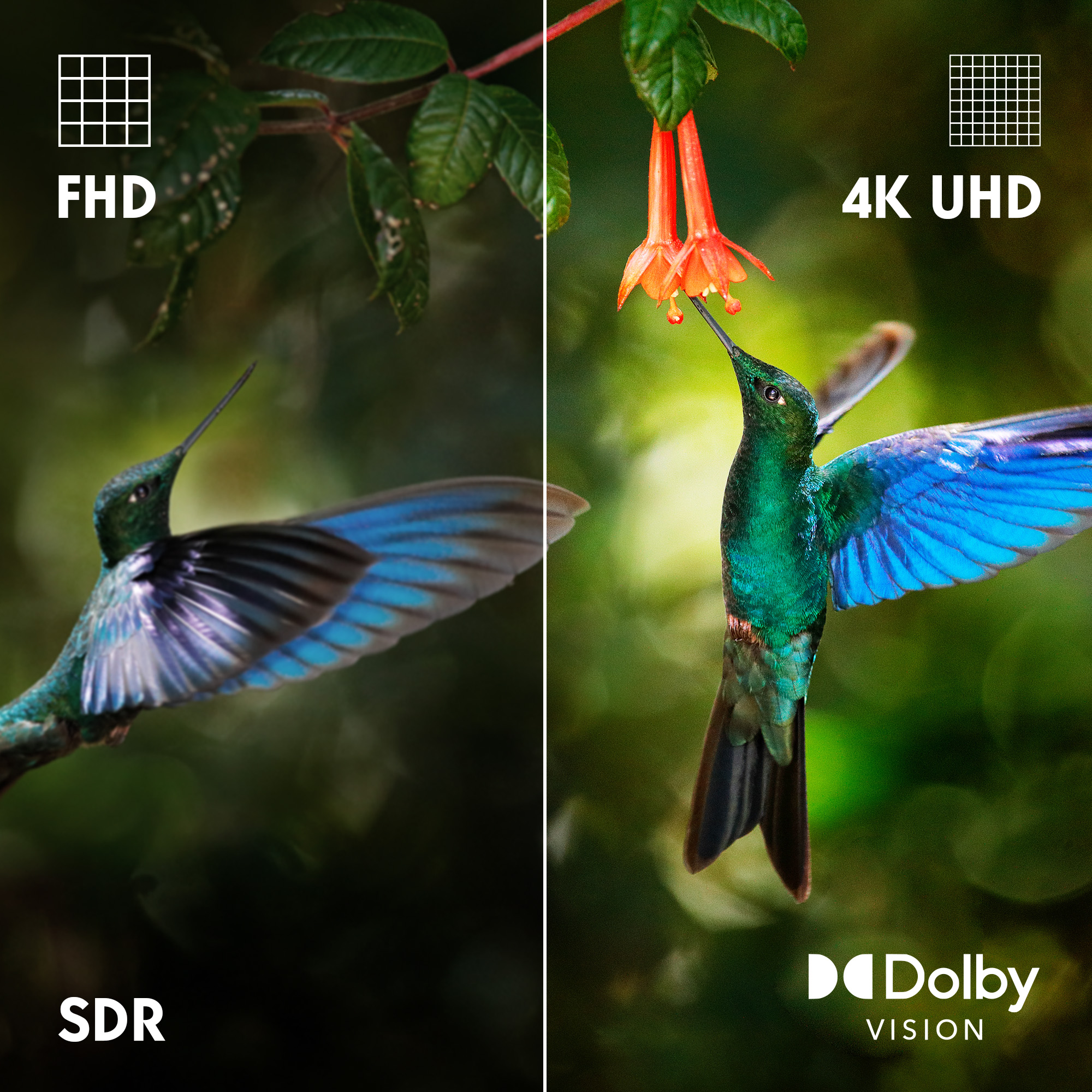 • Dolby Vision: Koe tasapainoinen kirkkaus, rikas kontrasti ja tarkka värientoisto jokaisessa ruudussa.