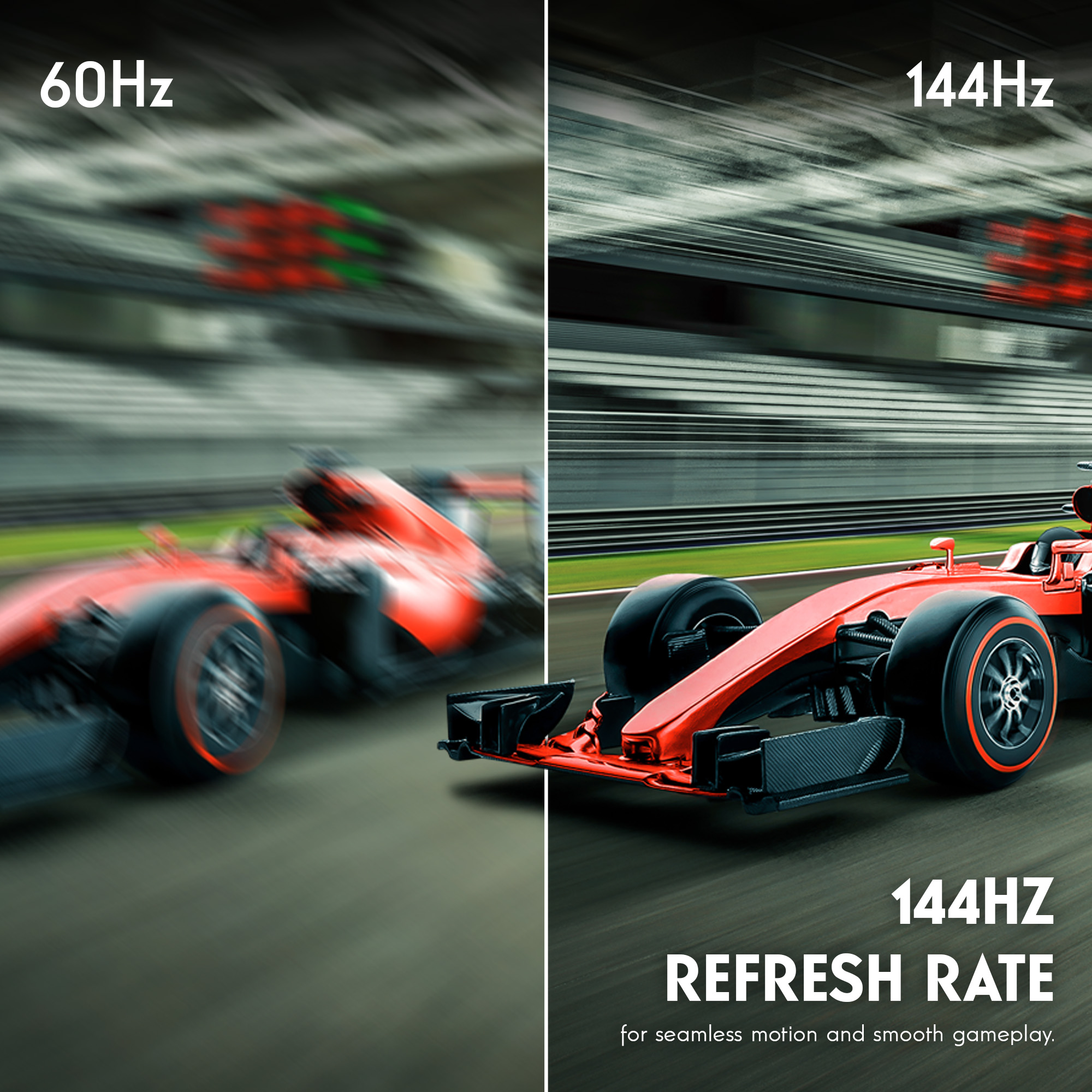 Sulava liike, laaja väritoisto ja tarkka kuva – Quantum Dot -teknologialla ja huippunopealla 144 Hz -paneelilla.