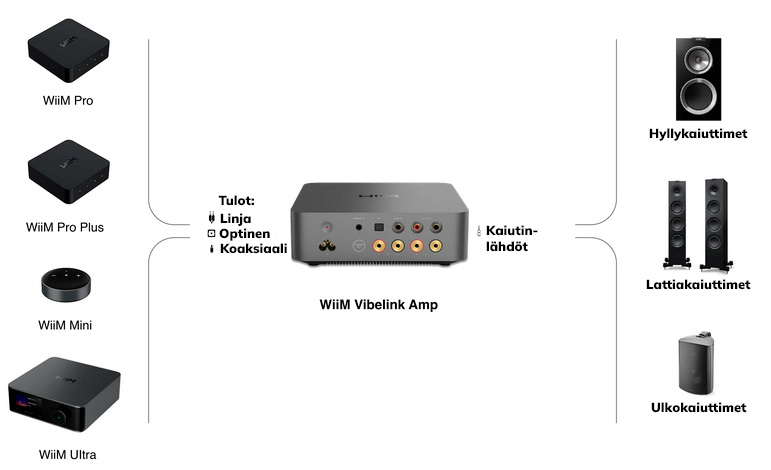 Moderni ja tehokas WiiM Vibelink Amp täydentää suosittuja WiiM Mini, Pro, Pro Plus ja Ultra -streamereita.