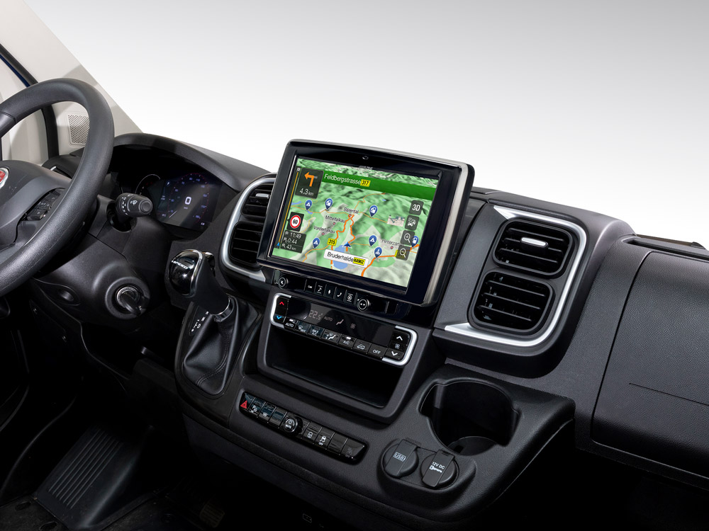 Suurella 9″ kosketusnäytöllä oleva navigointisoitin, 2022 vuosimallin Fiat Ducatoon (Fiat Ducato 8)