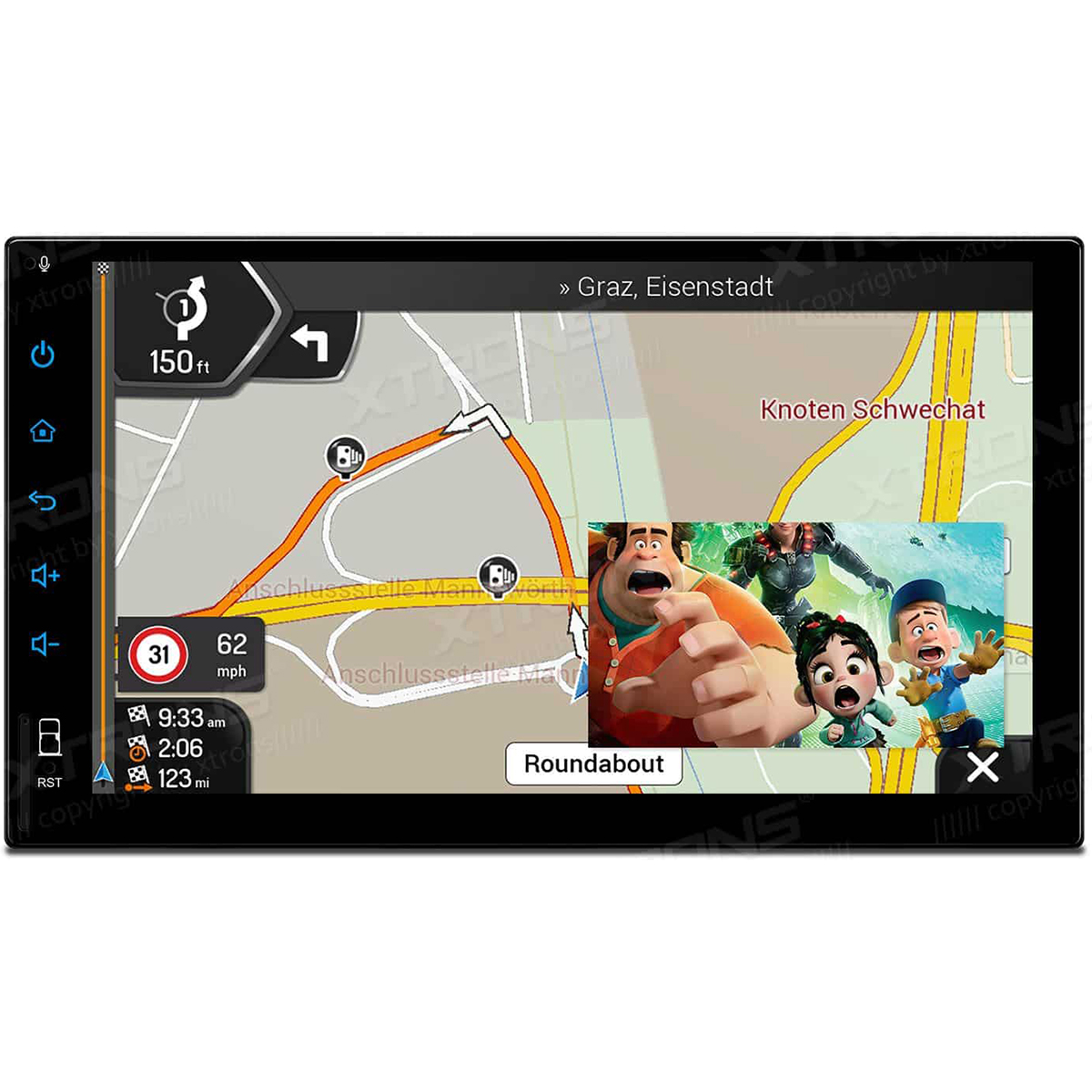 Käyttöliittymä on selkeä ja mukautettavissa. Xtronsin oma UI tukee monen sovelluksen samanaikaista näkymää (esim. navigointi + mediasoitin).